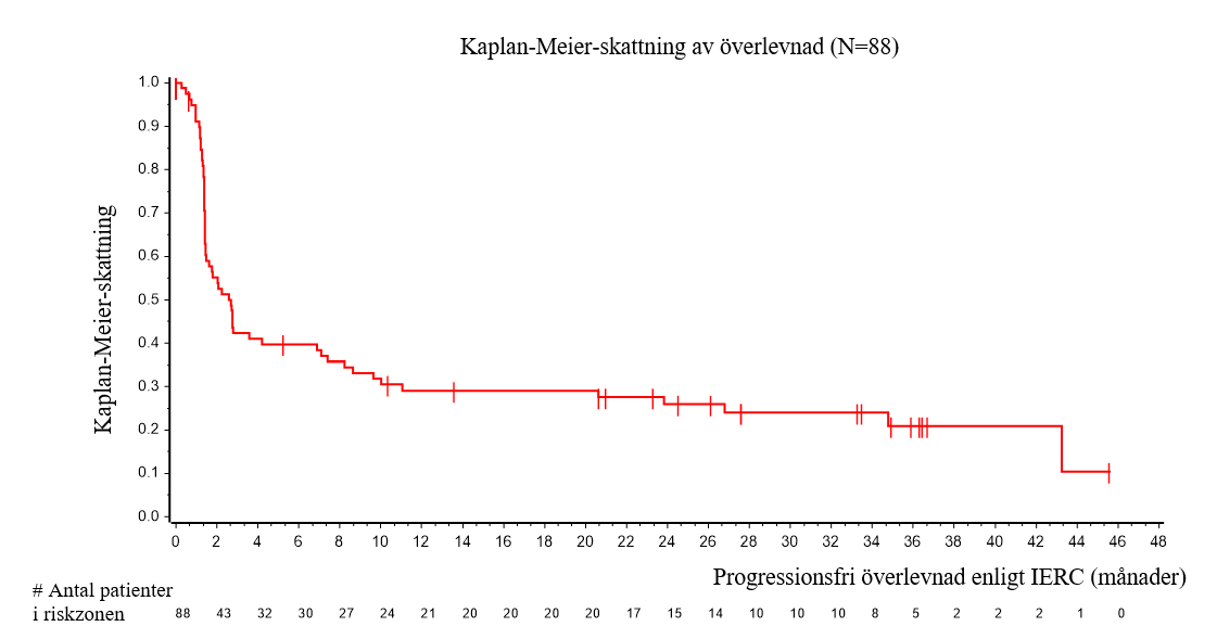 Figur 5: Kaplan-Meier-skattning av progressionsfri överlevnad baserad på BICR-bedömning hos patienter oavsett PD-L1-uttryck