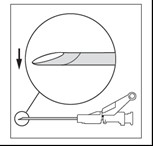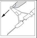 OBSERVERA: Aktivera genom att rikta nålen bort från dig själv och andra. Lyssna efter ett klick och kontrollera visuellt att nålspetsen är fullständigt täckt.