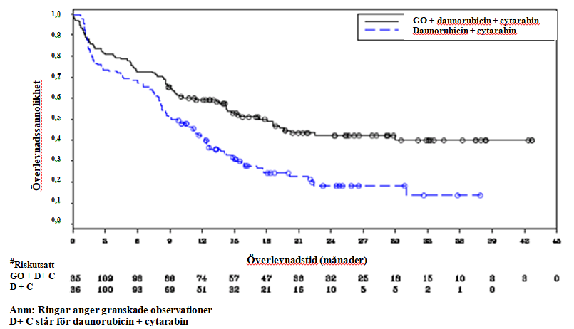Effekten av MYLOTARG har uppvisats hos AML-patienter med en cytogenetik som medför gynnsam och intermediär risk, medan det finns en osäkerhet rörande omfattningen av effekten hos patienter med högriskcytogenetik (se avsnitt 5.1). För patienter som behandlas med MYLOTARG i kombination med daunorubicin och cytarabin för nydiagnosticerad de novo AML, ska man när cytogenetiktestresultaten har kommit överväga om de potentiella fördelarna med att fortsätta behandlingen med MYLOTARG är större än riskerna för den enskilda patienten (se avsnitt 5.1).