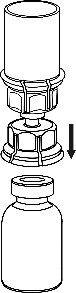 Värm vätskan till rumstemperatur. Avlägsna plastlocken från flaskan med pulver och flaskan med spädningsvätskan. Behandla gummipropparnas ytor med antiseptisk lösning och låt dem torka innan Mix2Vial-förpackningen öppnas.