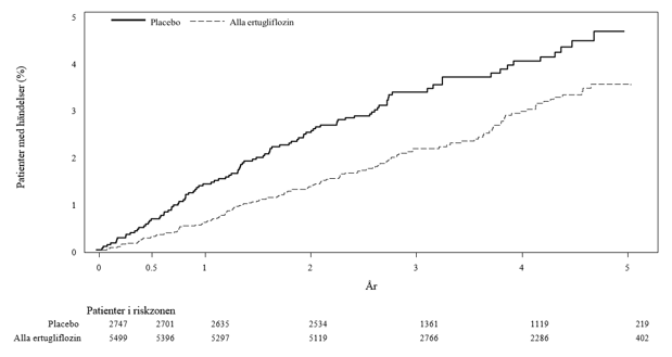 I en långtidsstudie av kardiovaskulära utfall, VERTIS CV (eValuation of ERTugliflozin effIcacy and Safety, CardioVascular), på patienter med typ 2‑diabetes mellitus och etablerad aterosklerotisk hjärt-kärlsjukdom, rapporterades icke-traumatiska amputationer av nedre extremiteter (främst tår) med en incidens på 2 % (0,57 patienter med händelser per 100 patientår), 2,1 % (0,60 patienter med händelser per 100 patientår) och 1,6 % (0,47 patienter med händelser per 100 patientår) för ertugliflozin 5 mg, ertugliflozin 15 mg respektive placebo. Frekvensen av händelser med amputation av nedre extremiteter var 0,75 och 0,96 jämfört med 0,74 händelser per 100 patientår för ertugliflozin 5 mg och ertugliflozin 15 mg jämfört med placebo. En ökning av antalet fall av amputationer av de nedre extremiteterna (främst tår) har observerats i kliniska långtidsstudier av typ 2 diabetes mellitus med SGLT2‑hämmare. Det är inte känt om detta utgör en klasseffekt. Det är viktigt att informera patienter med diabetes om rutiner för förebyggande fotvård.