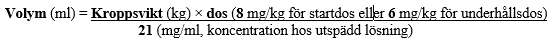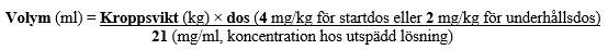 för att få en startdos av 4 mg trastuzumab/kg kroppsvikt, eller efterföljande veckovis dos på 2 mg trastuzumab/kg kroppsvikt:
