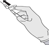 Ta bort locket (A) genom att dra rakt upp. Behåll steriliteten genom att inte vidröra sprutspetsen (B) (se Figur 2).