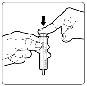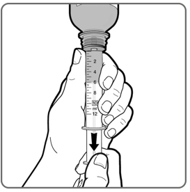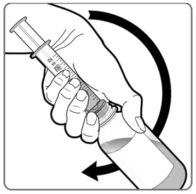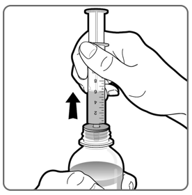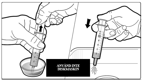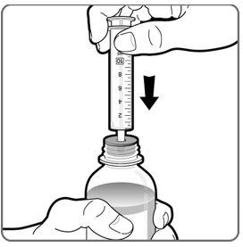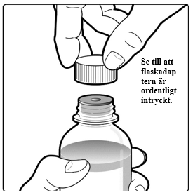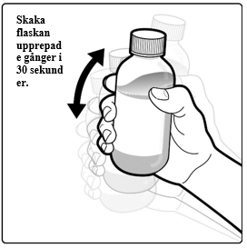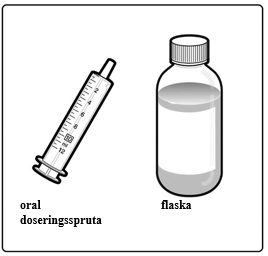 Steg 5: Överlämna flaskan med insatt adapter, bipacksedel och doseringsspruta för oral användning i sin originalförpackning till patienten eller vårdgivaren. Påminn patienten eller vårdgivaren att skaka flaskan kraftigt före varje användning.