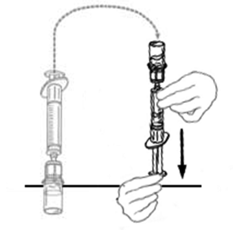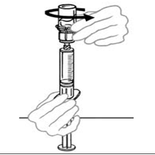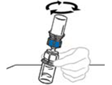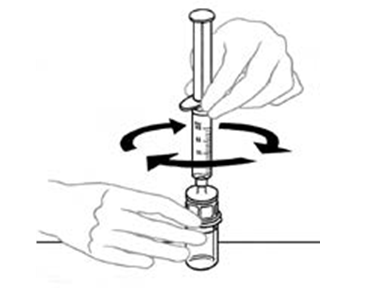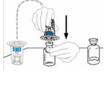 Inspektera den beredda lösningen i sprutan efter partiklar och missfärgning före administrering (lösningen ska vara klar, färglös och fri från partiklar). Det är inte ovanligt att det finns lite flagor eller partiklar kvar i produktflaskan efter beredning. Filtret i Mix2Vial‑anordningen tar bort dessa partiklar helt och hållet. Filtreringen påverkar inte dosberäkningarna. Lösningen i sprutan får inte användas om den är grumlig eller om den innehåller flagor eller partiklar efter filtreringen.