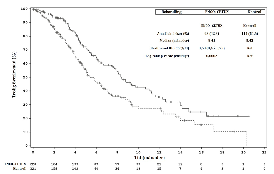 Ingen läkemedelsinteraktion påvisades mellan enkorafenib och cetuximab.