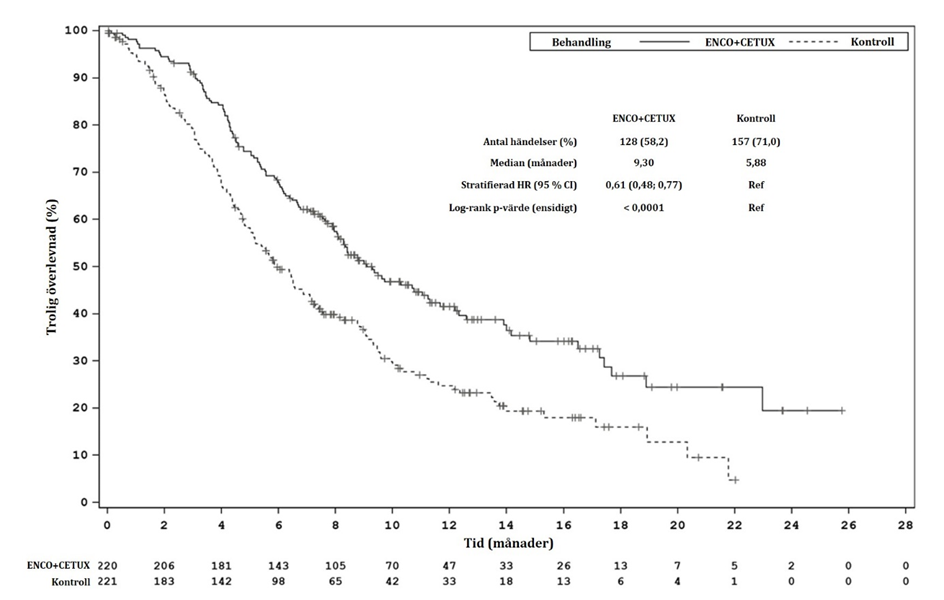 Om behandling med enkorafenib sätts ut permanent ska även behandling med cetuximab sättas ut.