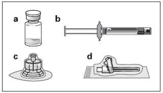 Ta bort plastlocket från injektionsflaskan och desinficera injektionsflaskans gummipropp med en spritservett.