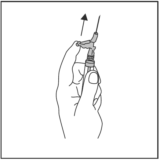 Händerna måste hela tiden hållas bakom nålen vid all användning och vid destruktion.