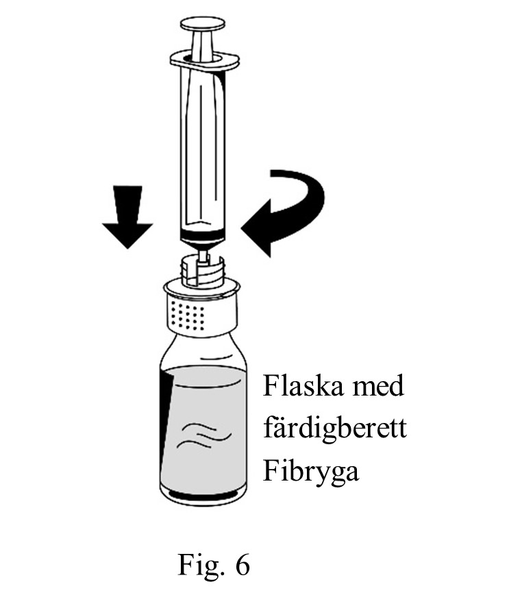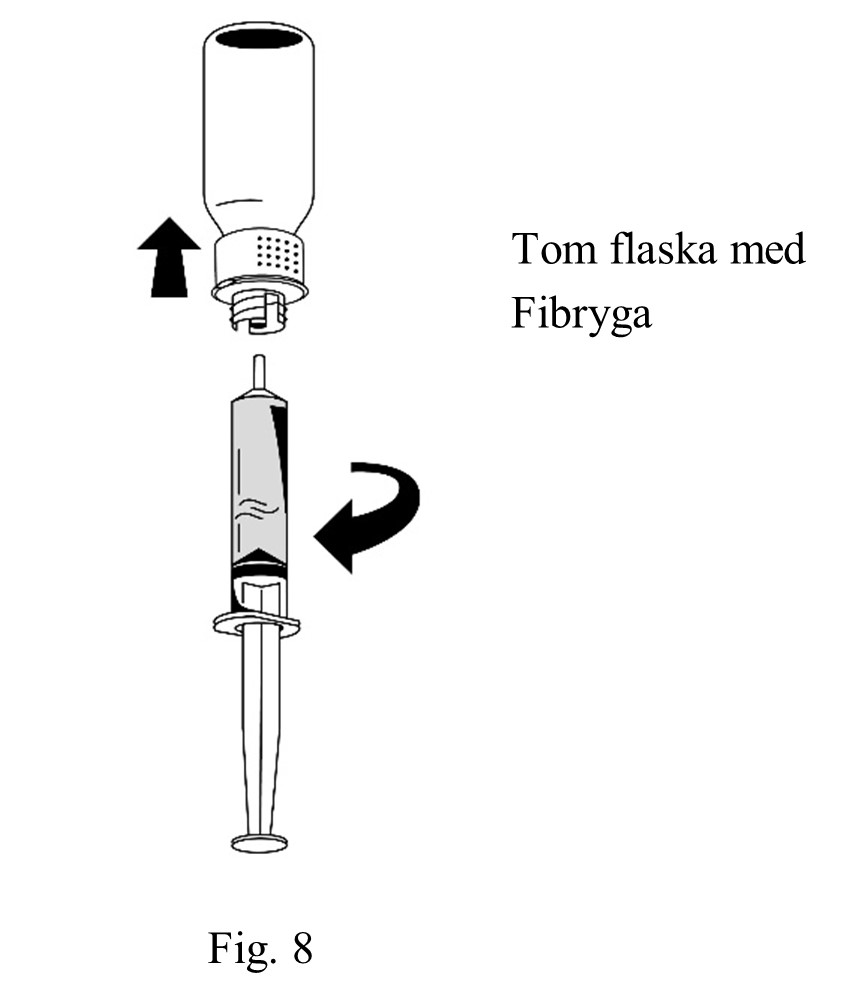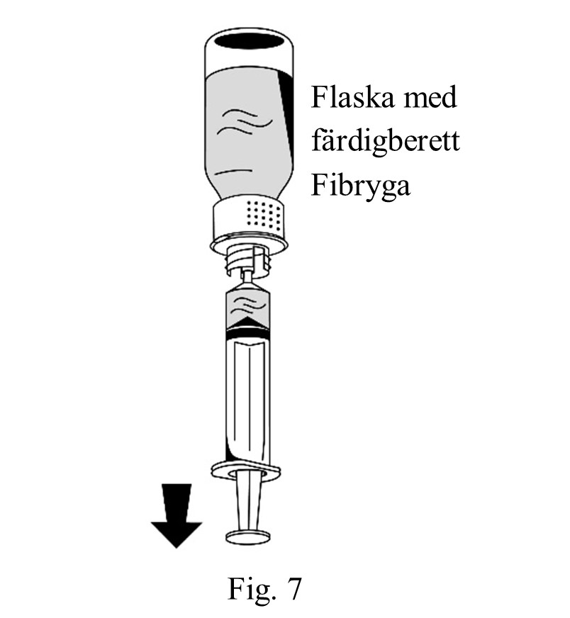 2. Vänd flaskan med Fibryga upp och ned och dra upp lösningen i sprutan (fig. 7).