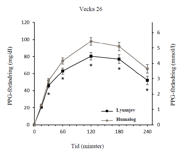 E Statistiskt signifikant bättre resultat för måltids-Lyumjev.