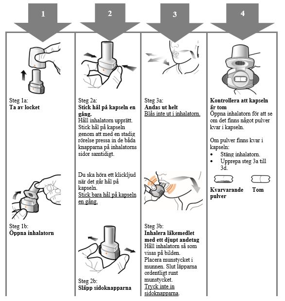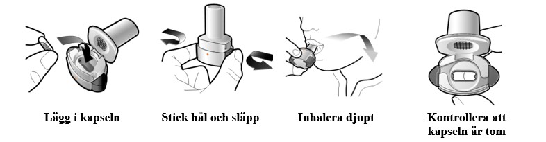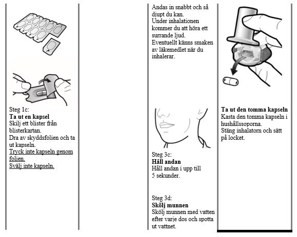 Kapslarna får endast administreras med inhalatorn som medföljer varje ny förpackning (se avsnitt 6.6).