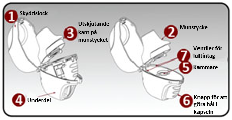 Inhalatorn är formgiven för Tiogiva kapslar. Tiogiva kapslar bör inhaleras via Tiogiva pulverinhalatorn.