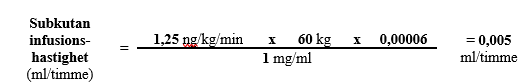 För en 60 kg person med rekommenderad initialdos på 1,25 ng/kg/min med 1 mg/ml Tresuvi kan infusionshastigheten beräknas på följande sätt: