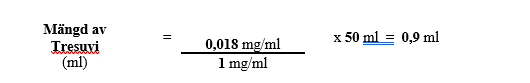 Mängden Tresuvi (styrkan av Tresuvi i infusionsflaskan är 1 mg/ml) som behövs för att treprostinil-koncentrationen ska bli 0,018 mg/ml och volymen 50 ml beräknas på följande sätt: