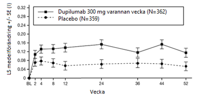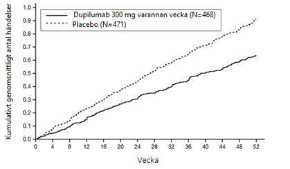 Rekommenderad dos av dupilumab för vuxna patienter är 300 mg varannan vecka.