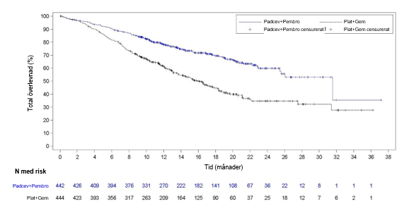 Figur 1. Kaplan-Meier-diagram av total överlevnad, EV-302