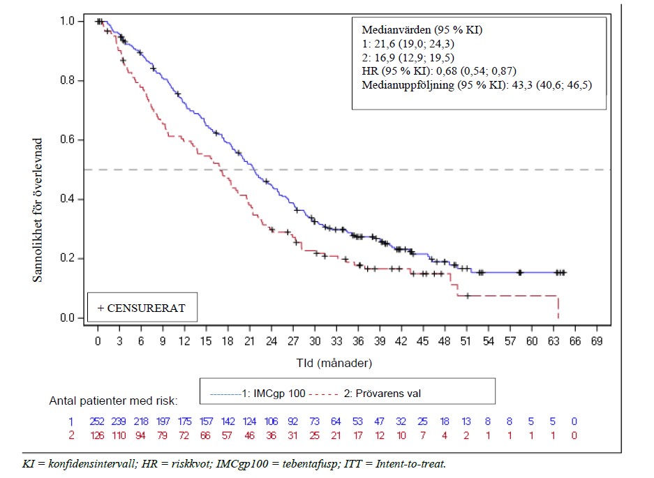 Efter 3 års uppföljning fortsätter tebentafusp att ge betydande överlevnadsfördel jämfört med prövarens val.