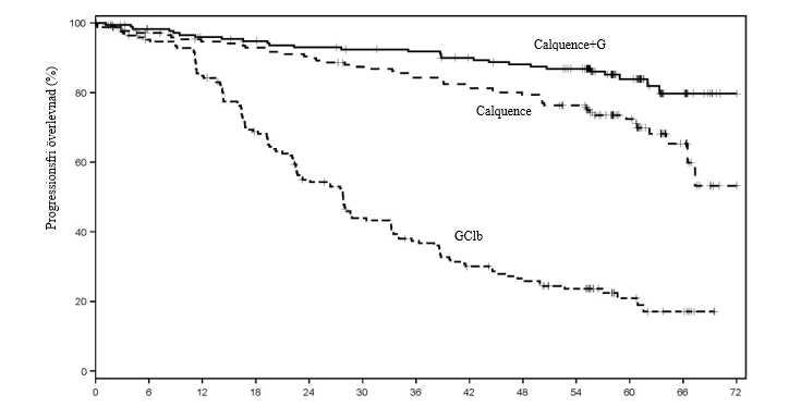 Vid slutlig analys var de prövarutvärderade PFS-resultaten för Calquence likvärdiga mellan subgrupperna, inklusive hög-riskfaktorer, och likvärdiga med den primära analysen.