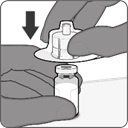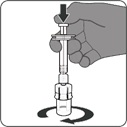 Använd en steril nål och steril spruta. Dra upp allt innehåll från injektionsflaskan som innehåller vätska och injicera allt innehåll som finns i sprutan in i injektionsflaskan som innehåller pulver.