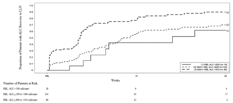 Behandling ska sättas ut hos patienter med långvarig svår lymfopeni (lymfocyttal < 0,5 × 109/l) som pågår i mer än 6 månader.