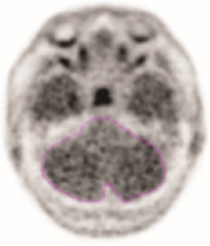 Registrera genomsnittlig aktivitet eller cerebellära värden (MCC). Området av intresse ska markeras med skanningen i gråskala och i axialplanet som exemplet i figur 1 visar.
