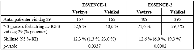Vid dag 29 observerades en statistiskt signifikant minskning av tCFS till fördel för Vevizye i båda studierna (se figur 1).