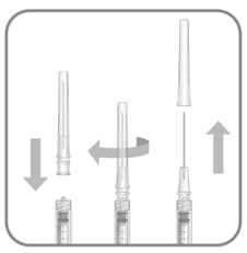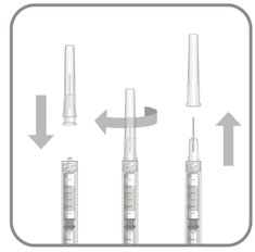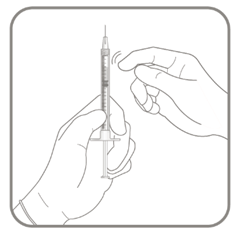 7. Använd aseptisk teknik och vrid fast en 30 G x ½ inch injektionsnål ordentligt på sprutans spets.