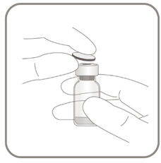 1. Ta bort plastlocket och desinficera den yttre delen av injektionsflaskans gummipropp.
