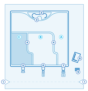 Påsen tillåter aktivering av 3 kamrar (lipider, aminosyror, glukos) eller 2 kamrar (endast aminosyror och glukos) beroende av patientens behov.