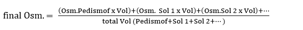 Om lösningar tillsätts till Pedismof behöver osmolariteten hos den slutgiltiga blandningen tas i beaktande vid val av infusionsväg (central eller perifer) (se även avsnitt 4.2). Osmolariteten kan beräknas genom att summera produkterna av osmolaritet och volym för de individuella lösningarna och dividera det med summan av volymerna av alla lösningar som ingår i blandningen (total volym i liter):