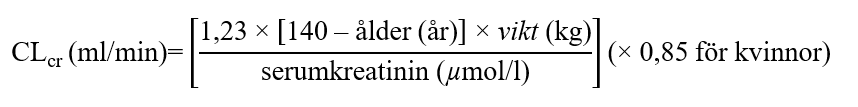Tabell 1. Justering av pregabalindosen med hänsyn till njurfunktionen