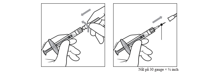 Använd en 30 G × ½ inch injektionsnål för den intravitreala injektionen.