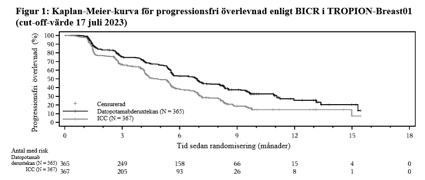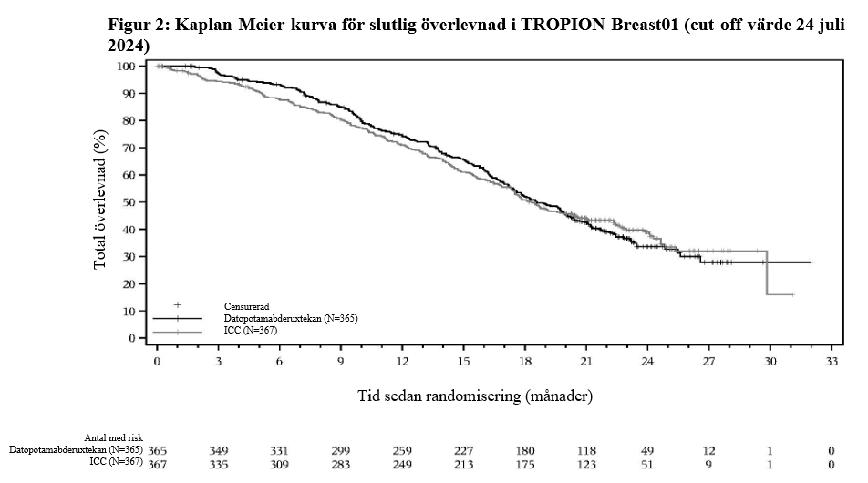 d 12,3 % och 24,0 % av patienterna i datopotamabderuxtekan- respektive ICC-armarna fick efterföljande behandling med trastuzumabderuxtekan och/eller sacituzumabgovitekan efter behandlingsavbrott.