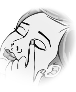 När du är säker på att du kan administrera en droppe i taget väljer du den position som du tycker är bekvämast för administrering av dropparna (du kan sitta ner, ligga på ryggen eller stå framför en spegel).