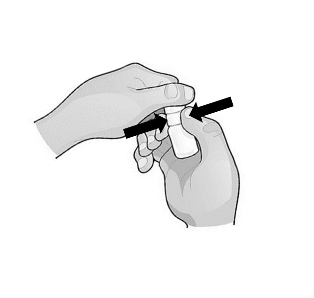 När du använder flaskan för första gången bör du, innan du ger en droppe i ögat, öva på att använda flaskan genom att långsamt trycka ihop den för att avge en droppe (ej i ögat).