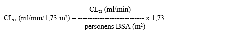 Därefter justeras CLcr för kroppens ytarea (BSA; body surface area) enligt följande: