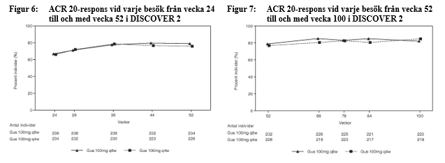 I ASTRO randomiserades patienterna i förhållandet 1:1:1 till att få guselkumab 400 mg subkutan induktion vid vecka 0, 4 och 8 följt av guselkumab 100 mg subkutan underhållsbehandling var 8:e vecka, eller guselkumab 400 mg subkutan induktion vid vecka 0, 4 och 8 följt av guselkumab 200 mg subkutan underhållsbehandling var 4:e vecka, eller placebo.