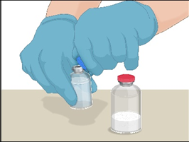 Värm den oöppnade injektionsflaskan som innehåller spädningsvätska (sterilt vatten för injektionsvätskor) till rums- eller kroppstemperatur (högst 37 °C).