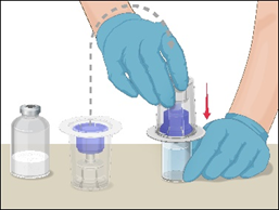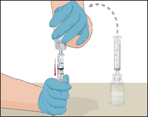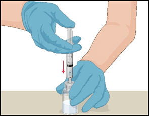 Kontrollera att den beredda lösningen i sprutan inte innehåller partiklar eller är missfärgad före administreringen. Lösningen ska vara klar, färglös och fri från partiklar. Filtret som medföljer Mix2Vial-produkten rensar bort sådana partiklar helt. Filtreringen påverkar inte doseringsberäkningarna. Lösningen i sprutan ska inte användas om den är grumlig eller innehåller flagor eller partiklar efter filtreringen.