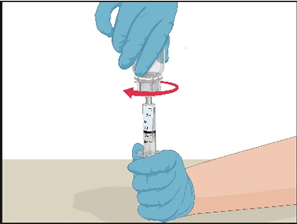 Sätt fast infusionsnålen på en spruta som innehåller Prothromplex-lösning. Av komfortskäl rekommenderas ett infusionsset med vinge (butterfly). Rikta nålen uppåt och avlägsna eventuella luftbubblor genom att försiktigt knacka på sprutan med fingret och långsamt och försiktigt trycka ut luft ur sprutan och nålen.